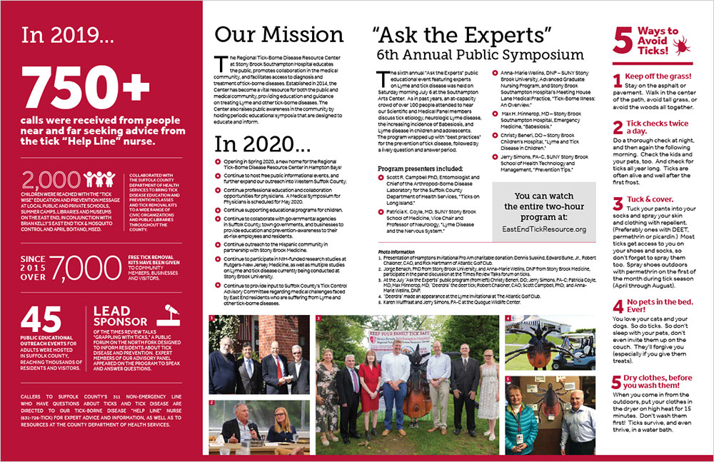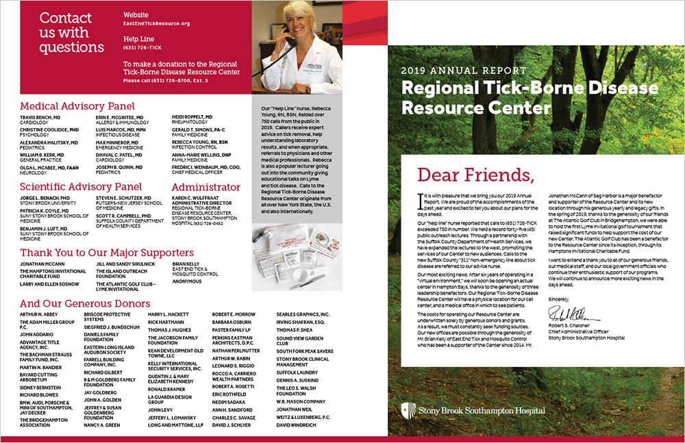 Hospital Tick Prevention materials including poster, print ad and annual report.
